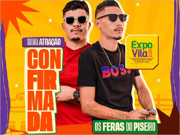 25-09-2025Junto com Mara Pavanelly, eles vão fazer a festa na nossa tradicional exposição. Marque na agenda: de 2 a 4 de outubro, a diversão é garantida!