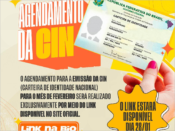 28-01-2026Link para solicitação da CIN será liberado nesta dia 28 de janeiro. Vagas são limitadas e o sistema fechará assim que forem preenchidas.