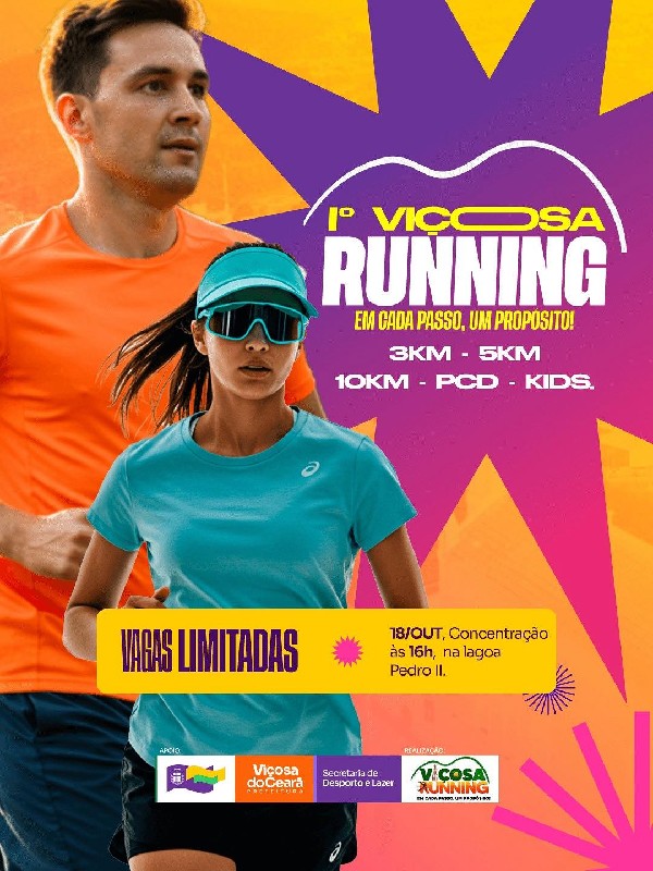 Vagas limitadas! Garanta a sua no 1º Viçosa Running, que acontece neste sábado (18).