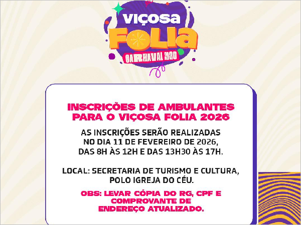Há 10 diasCadastro será realizado no dia 11 de fevereiro na Secretaria de Turismo. Vagas são limitadas e exigem apresentação de documentos pessoais.