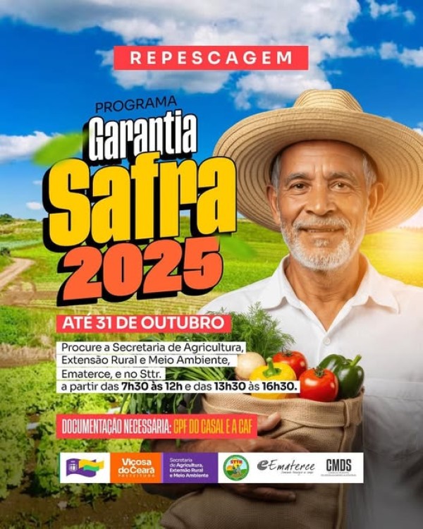 Última chance! Repescagem do Garantia Safra 2025 vai só até esta sexta-feira, 31 de outubro!