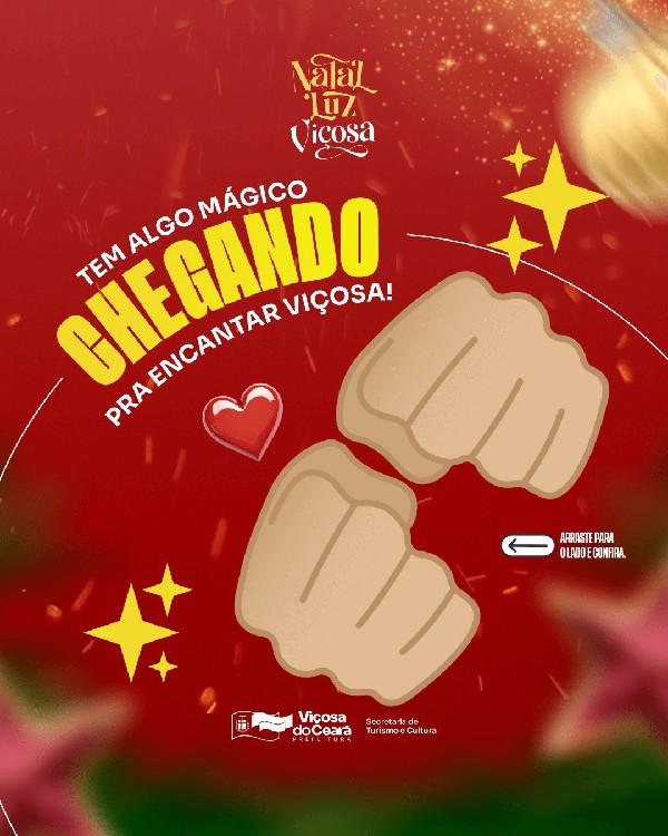 O clima natalino já começou! A Prefeitura está preparando um evento cheio de brilho e emoção para a família. Fique atento e arraste para o lado!